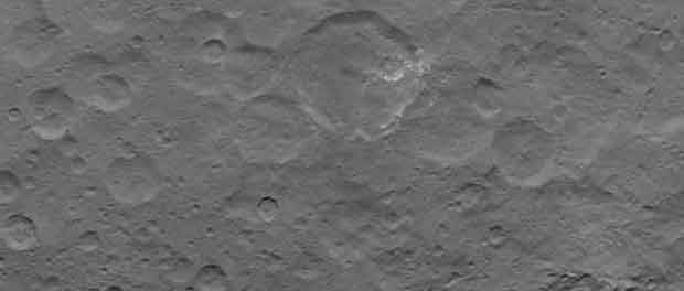 La sonde spatiale Dawn continue son approche de la planète morte Cérès. Les photos transmises deviennent de plus en plus précises. Les principaux points lumineux situés au fond d’un cratère d’environ 90 Km de diamètre deviennent un peu plus visibles encore. On peut constater qu’il y en a plusieurs de toutes les tailles, le plus grand ferait environ 9Km de large. Sur les photos précédentes on en distinguait moins. Le sel et la glace sont toujours des pistes de recherche mais pas les seules. Le spectromètre de Dawn va étudier comment la lumière est réfléchie sur Cérès, les scientifiques pourront en déduire les minéraux présents espérant ainsi comprendre ce que sont ses points lumineux.