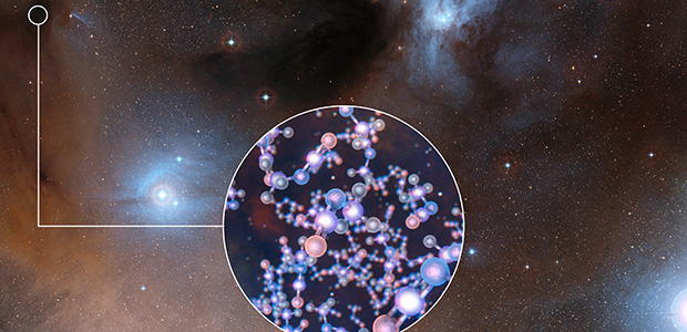 L’énorme potentiel d’ALMA a permis aux deux équipes d’observer la molécule à plusieurs longueurs d’ondes caractéristiques et différentes du spectre radio. Les seules et uniques traces de cet élément chimique ont été localisées au sein des régions internes, denses et chaudes, du cocon de gaz et de poussière qui entoure les jeunes étoiles au tout premier stade de leur existence. Chaque équipe a identifié et isolé les signatures de la molécule organique complexe d’isocyanate de méthyle. Puis, la modélisation numérique chimique et diverses expériences de laboratoire leur ont permis d’affiner notre compréhension de l’origine de la molécule. IRAS 16293-2422 est un système multiple composé de très jeunes étoiles, situé à quelque 400 années-lumière de la Terre dans une vaste région de formation stellaire baptisée Rho Ophiuchi dans la constellation d’Ophiuchus (Le Serpentaire). Les résultats nouvellement acquis par ALMA indiquent que du gaz d’isocyanate de méthyle entoure chacune de ces jeunes étoiles.