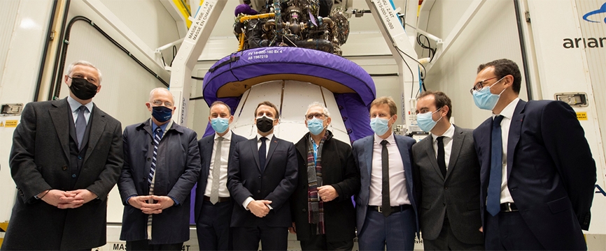 A l’occasion de la visite, sur le site ArianeGroup de Vernon, du Président de la République, Emmanuel Macron, du ministre de l’Economie, des Finances et de la Relance, Bruno Le Maire, du ministre des Outre-Mer, Sébastien Lecornu, le Président Exécutif d’ArianeGroup, André-Hubert Roussel, et le Président du CNES, Jean-Yves Le Gall, ont signé un contrat préparant la réalisation d’essais du nouveau moteur Prometheus sur le site normand.