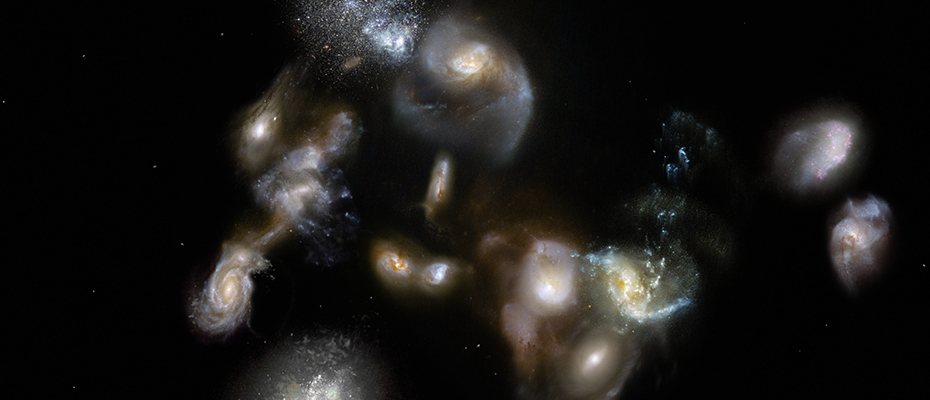 Le communiqué de presse scientifique publié le 25 avril 2018 par l’observatoire européen austral (ESO) revient sur la détection de conglomérats massifs de galaxies en formation dans l’Univers jeune: Les télescopes ALMA et APEX ont sondé l’Univers lointain – cette époque à laquelle l’Univers n’était âgé que du dixième de son âge actuel – et assisté aux tous débuts de gigantesques carambolages cosmiques : les collisions imminentes de jeunes galaxies à formation d’étoiles. Les astronomes pensaient que ces événements s’étaient produits quelque trois milliards d’années après le Big Bang. Ils ont donc été surpris de constater, au travers de ces nouvelles observations, que ces collisions sont en réalité survenues alors que l’Univers était deux fois plus jeune ! Ces anciens systèmes de galaxies sont supposés avoir contribué à la formation des structures les plus massives de l’Univers connu : les amas de galaxies.