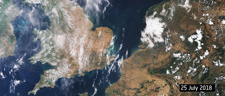 L’agence spatiale européenne (ESA) a publié un animation montrant les changements provoqués par la canicule en Europe. Elle dévoile deux photos prises par Sentinel-3 montrant une partie de l’Irlande, le Royaume-Uni, les Pays-Bas, la Belgique, une partie de l’Allemagne et une partie de la France. La première image a été capturée le 28 juin dernier, on peut constater que la végétation est saine et qu’elle est bien verte. La seconde image a été prise le 25 juillet 2018, on peut observer que le vert a disparu pour laisser sa place au brun. Cette petite animation montre à quel point la végétation a évolué en l’espace d’un mois.