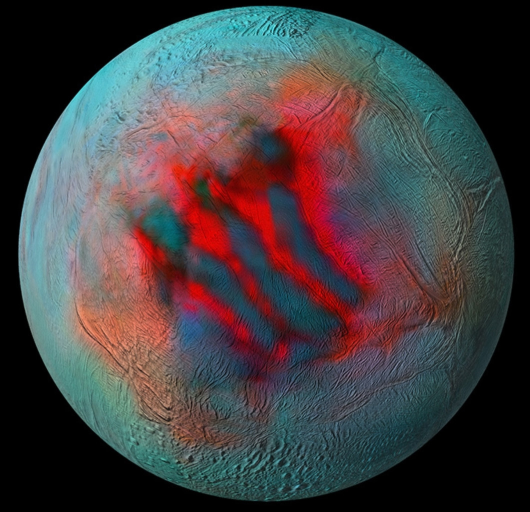 La sonde Cassini a orbité autour de Saturne et de ses lunes de 2004 à 2017. Si la sonde a terminé sa vie en se désintégrant dans l’atmosphère de Saturne, les données qu’elle a transmise apporte encore de nombreuses découvertes. Elle avait survolé Encelade 147 fois, dont 23 survols rapprochées de la lune glacée. Le spectromètre de cartographie visuelle et infrarouge (VIMS) a collecté des données qui peuvent être utilisées pour révéler des informations sur la température et la composition de la surface, ainsi que sur les tailles et la cristallinité des grains de glace. A partir de ces données, une nouvelle étude a publié une mosaïque spectrale de la Lune qui héberge un océan d’eau liquide sous sa surface. Elle révèle en particulier une activité géologique dans l’hémisphère Nord d’Encelade. Découvrez le podcast du site ça se passe là-haut qui revient sur ces informations.
