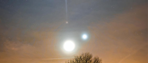 Maxime Oudoux est un photographe français qui a eu l’honneur de voir une de ses photos publiée sur le site Apod de la NASA. Il faut bien admettre que son cliché est assez extraordinaire. Ce n’est pas tous les jours que l’on peut voir la lune, Mars, Vénus et l’ISS sur une même image. Maxime Oudoux a réussi cette exploit le 31 janvier dernier à 19H59 depuis la Sarthe. Il a profité de la double conjonction dans le ciel avec la Lune, Mars et Vénus pour capturer le passage de la station spatiale internationale. Le photographe français a réussi à prendre trois clichés avec un temps de pose de 15 secondes. En superposant les photos il a réalisé l’image suivante où l’ISS laisse un trait de lumière dans le ciel.