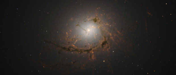 La galaxie NGC 4696 se situe dans la constellation du Centaure à quelques 150 millions d’années lumière de la Terre. Elle est la galaxie la plus brillante de tout l’amas du Centaure. NGC 4696 présente une forme des plus particulières en étant enveloppée par des filaments tourbillonnants.  Les scientifiques se sont penchés sur le cas de cette beauté cosmique grâce à de nouvelles observations faites par le télescope spatiale Hubble.