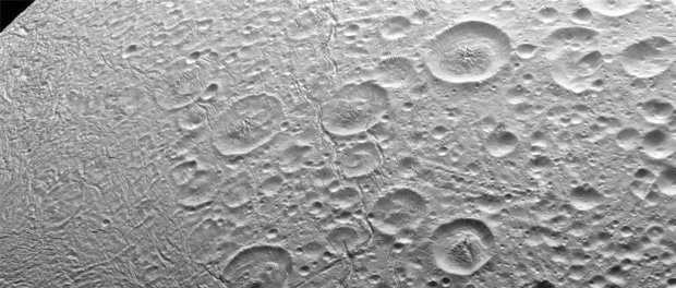 La NASA a publié le premier mai dernier une nouvelle image du pôle Nord d’Encelade. Elle a été acquise en lumière visible par la sonde spatiale Cassini le 27 novembre 2016, à une distance de 32 000 km. Cette zone de la lune glacée de Saturne est fortement couverte de cratères, montrant que la surface n’a pas changé depuis longtemps contrairement à son pôle Sud et fameux geysers.