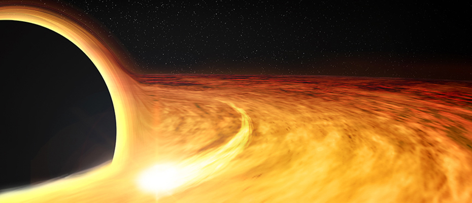 Vue d'artiste de la proximité de l'horizon d'un trou noir accrétant une étoile déchirée (NASA)