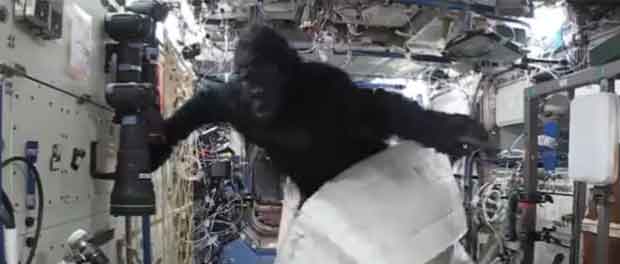 L’astronaute américain Scott Kelly a publié une vidéo assez fun sur son compte twitter. On peut voir son frère Marc Kelly présent également dans la station spatiale internationale qui ouvre un étrange carton. Une surprise se cache dedans, Scott Kelly en gorille. Il sort avec son déguisement et on a le droit à la musique benny hill pour un moment vraiment très spatial.