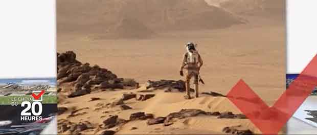 France 2 a publié un sujet sur le nouveau film de Ridley Scott « Seul sur Mars ». Des scientifiques l’ont vu en avant-première et les journalistes de France Télévision les ont interrogés. « Je regarde le film comme une étant une vraie anticipation, c’est à dire quelque chose qui va arriver », explique Alan Souchier, ingénieur en aérospatiale.