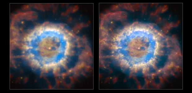 L’ESO a publié la première image prise par le spectrographe MUSE depuis qu’il a été couplé à une optique adaptative de pointe sur le télescope UT4 du Very Large Telescope européen au Chili. Cette optique adaptative vise à compenser le brouillage des images généré par l’atmosphère de la Terre, et donc à permettre à MUSE d’acquérir des images bien plus nettes et contrastées qu’auparavant. A présent, MUSE peut étudier les objets les plus faibles de l’Univers.