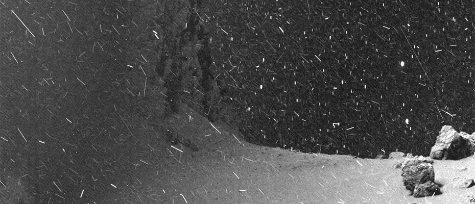 L’agence spatiale européenne (ESA) a mis à disposition les archives photos de la mission Rosetta-Philae, tout le monde peut les consulter et les utiliser. @landru79 sur Twitter ne s’en est pas privé en montrant tout le potentiel de cette base de données. Il a publié le 23 avril dernier une incroyable vidéo de la surface de la comète Chury. Elle a été réalisée à partir des images brutes prises le premier juin 2016 par la sonde spatiale européenne à une distance de 13 km. Le résultat est bluffant, on se croirait en pleine tempête de neige. Il s’agît principalement de particules émises par la comète et de parasites provoqués par les rayons cosmiques.